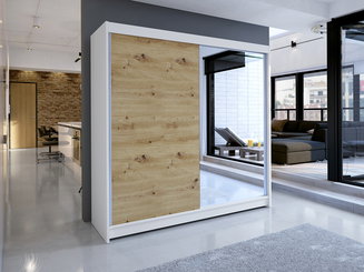 Dulap de haine TAlbergia TN05 (Alb + Alb + stejar craft auriu)