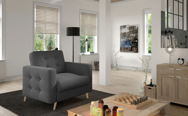 AfișeazăFotoliu confortabil și elegant Adelle în ofertă pe mai multe culori. Tapițat cu textil Ontario.