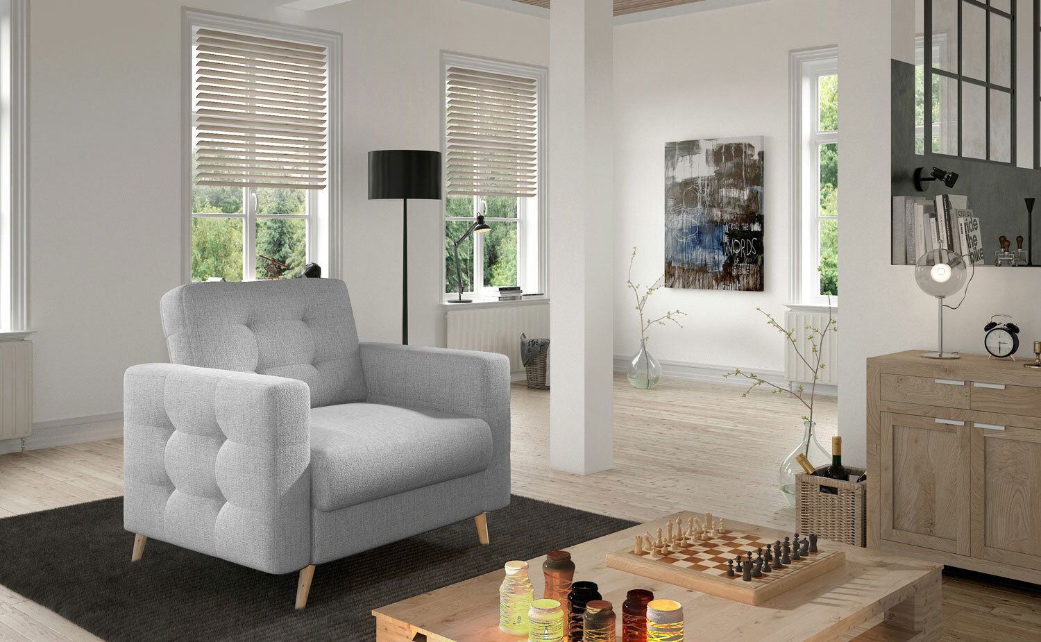 AfișeazăFotoliu confortabil și elegant Adelle în ofertă pe mai multe culori. Tapițat cu textil Solid