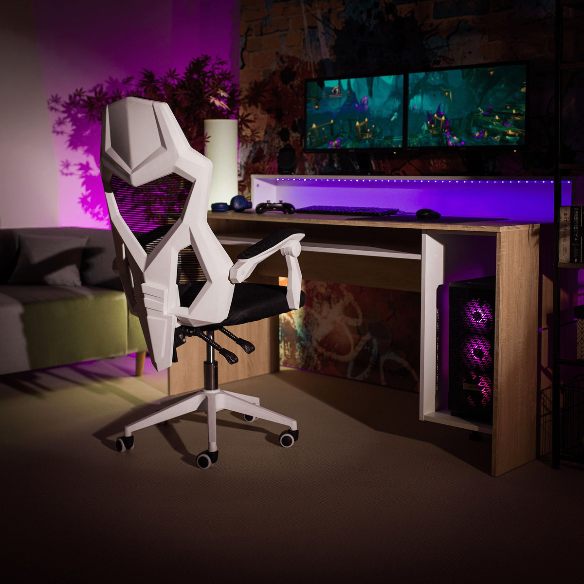Scaunul de birou pentru gaming Yuky este alegerea potrivită. Ședere confortabilă și ergonomică, perne detașabile pentru cap și spate, cotiere tapițate și, bineînțeles, înălțimea scaunului reglabilă.