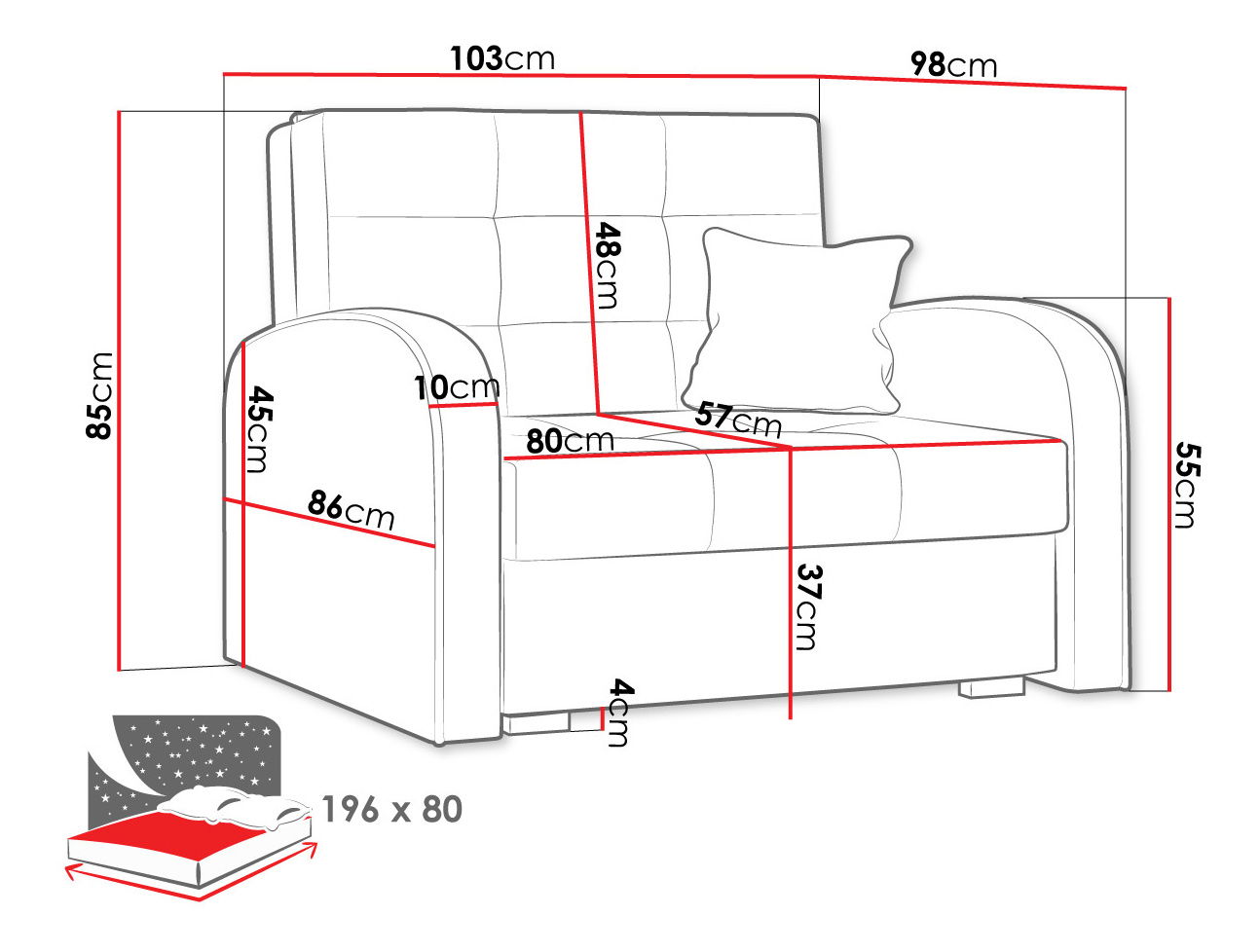 196 x 80 cm