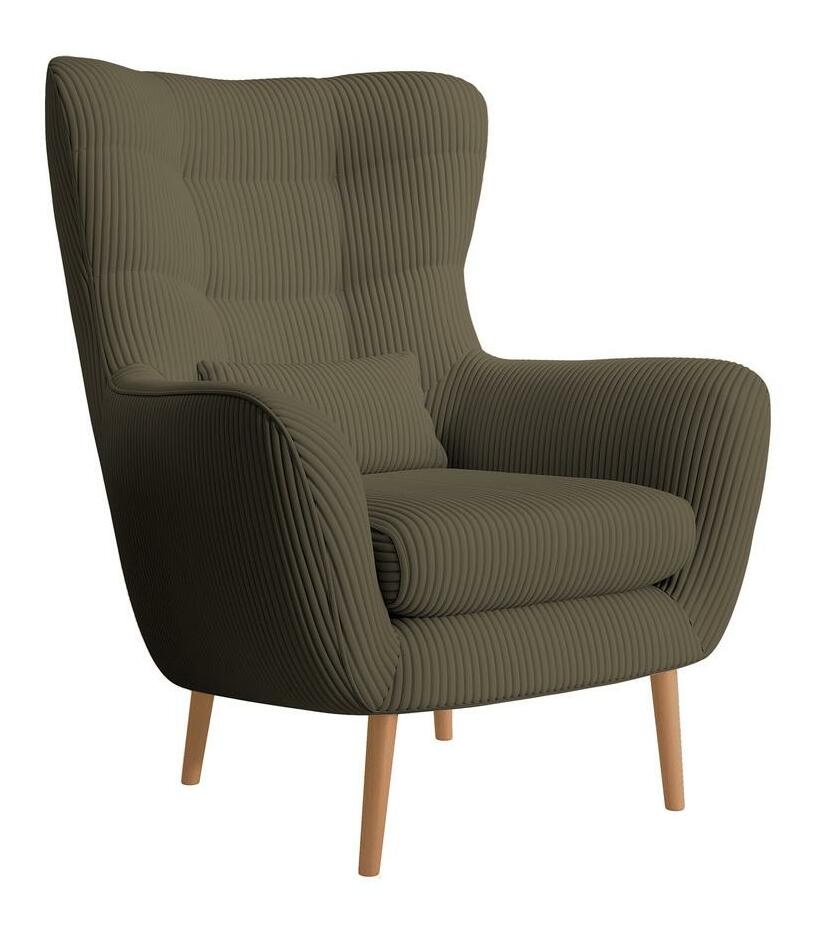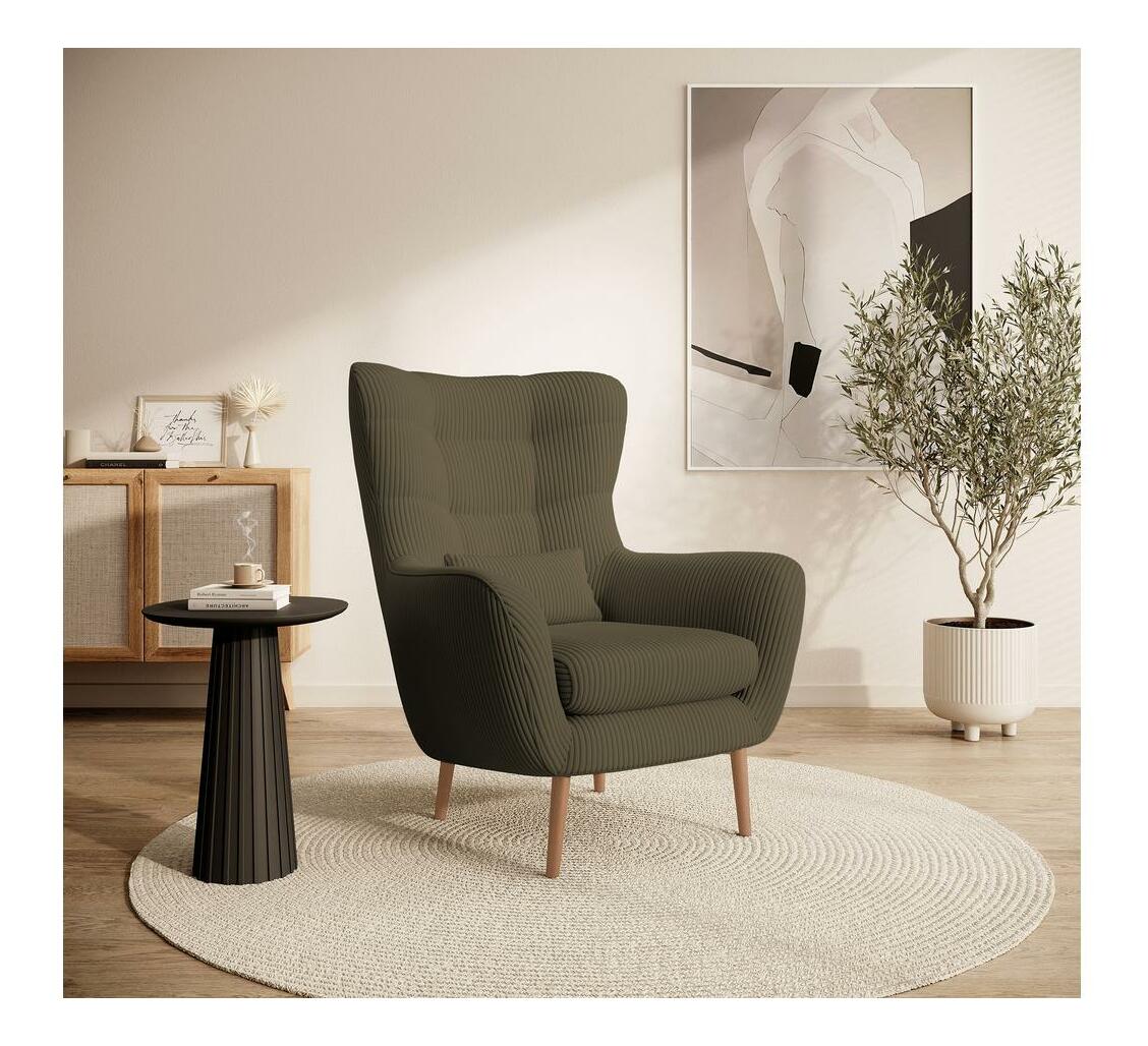 Fotoliul cu suport pentru picioare Veneza VZ2 de la Selsey este o piesă de mobilier ideală pentru orice living modern sau clasic. Tapițeria fină, într-o nuanță măslinie subtilă, se armonizează cu textura lemnului de fag, aducând un plus de căldură și rafinament încăperii.