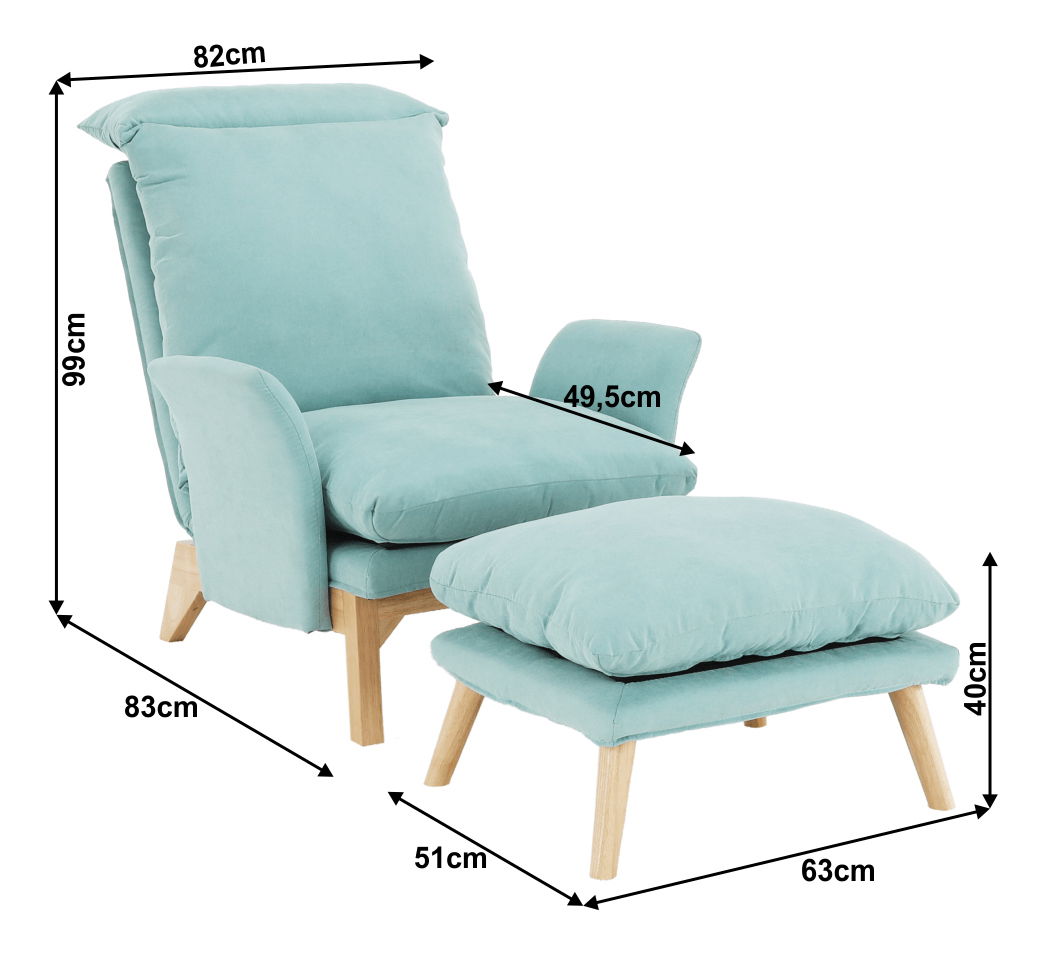 Nu vă place să vă înghesuiți pe o canapea? Tânjiți după propria dvs. oază de relaxare? Atunci veți fi fermecați de fotoliul acesta cu un taburet ZANDER. Acest taburet va deveni tovarășul perfect pentru odihna binemeritată de zi cu zi. Picioare din lemn masive și țesătura mentol de calitate fac din el o bijuterie, care va decora orice interior. Se poate regla, apăsând ușor pe spătar din spate, fotoliul se înclină într-o poziție de relaxare. Relaxați-vă pe deplin și bucurați-vă de bunăstarea de acasă, cu picioarele așezate pe taburet. O piesă atemporală care are ceva de oferit.