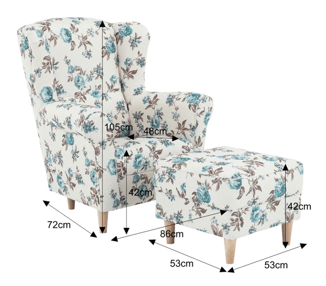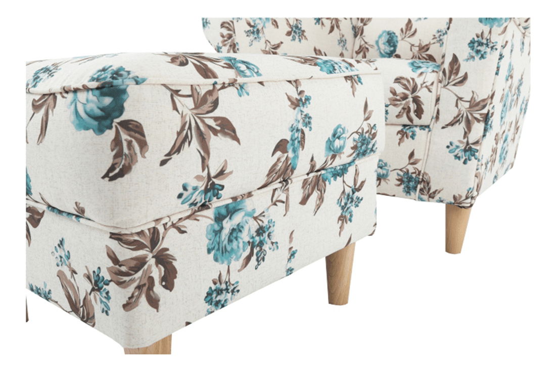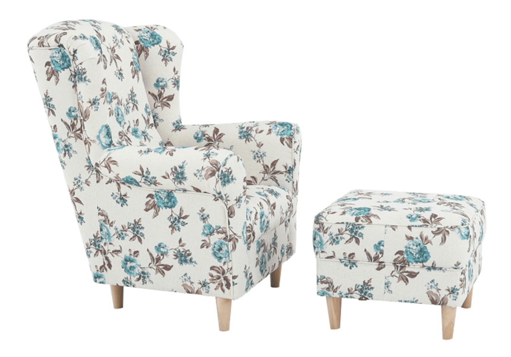 Fotoliul cu un model floral frumos va fi un accesoriu frumos în locuințele amenajate tradițional. Este confortabil și îi aparține și un taburet practic, pe care îl puteți folosi în timpul momentelor de relaxare.