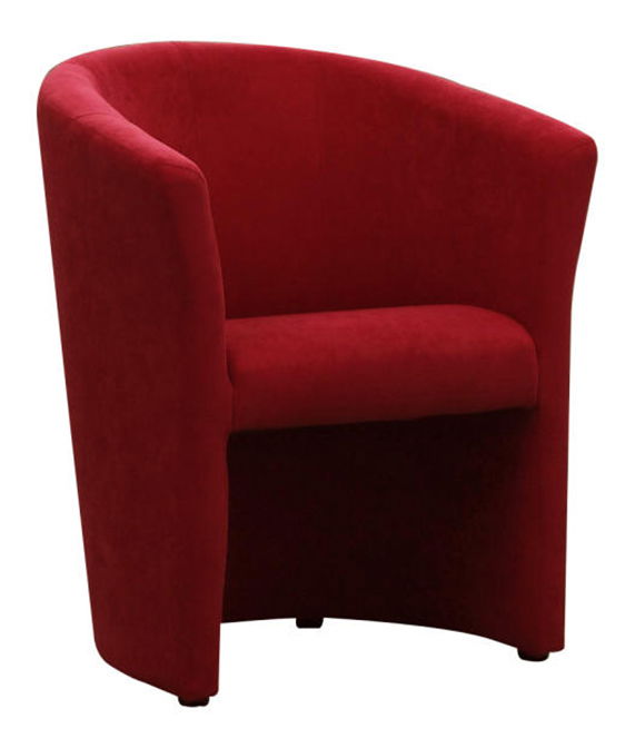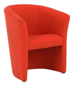 Fotoliu modern potrivit pentru cafenele, living sau birou. Este tapițat cu stofă microfază roșie.