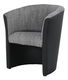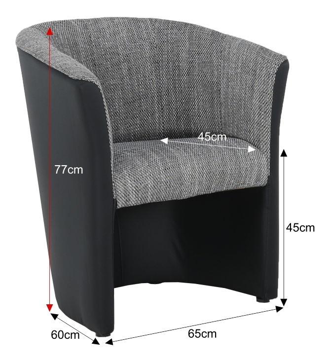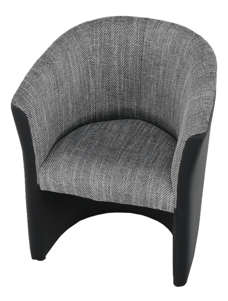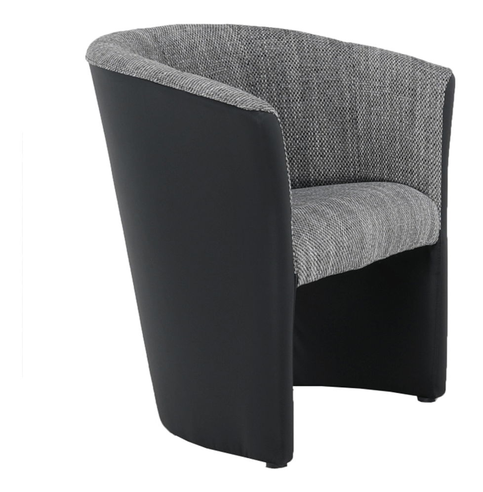 Fotoliu modern potrivit pentru a fi amplasat în cafenele, birouri sau camere de zi. Este tapițat cu stofă Lava 5 în combinație cu piele ecologică neagră.