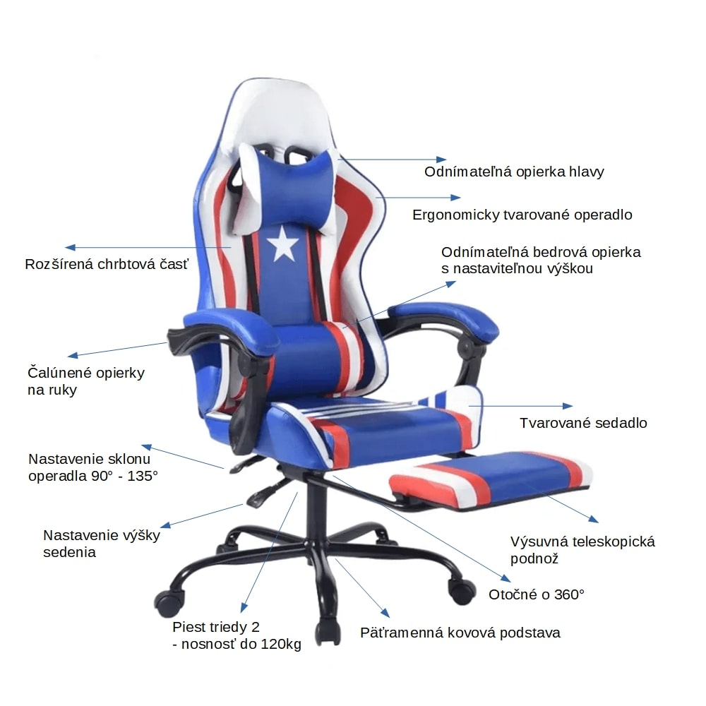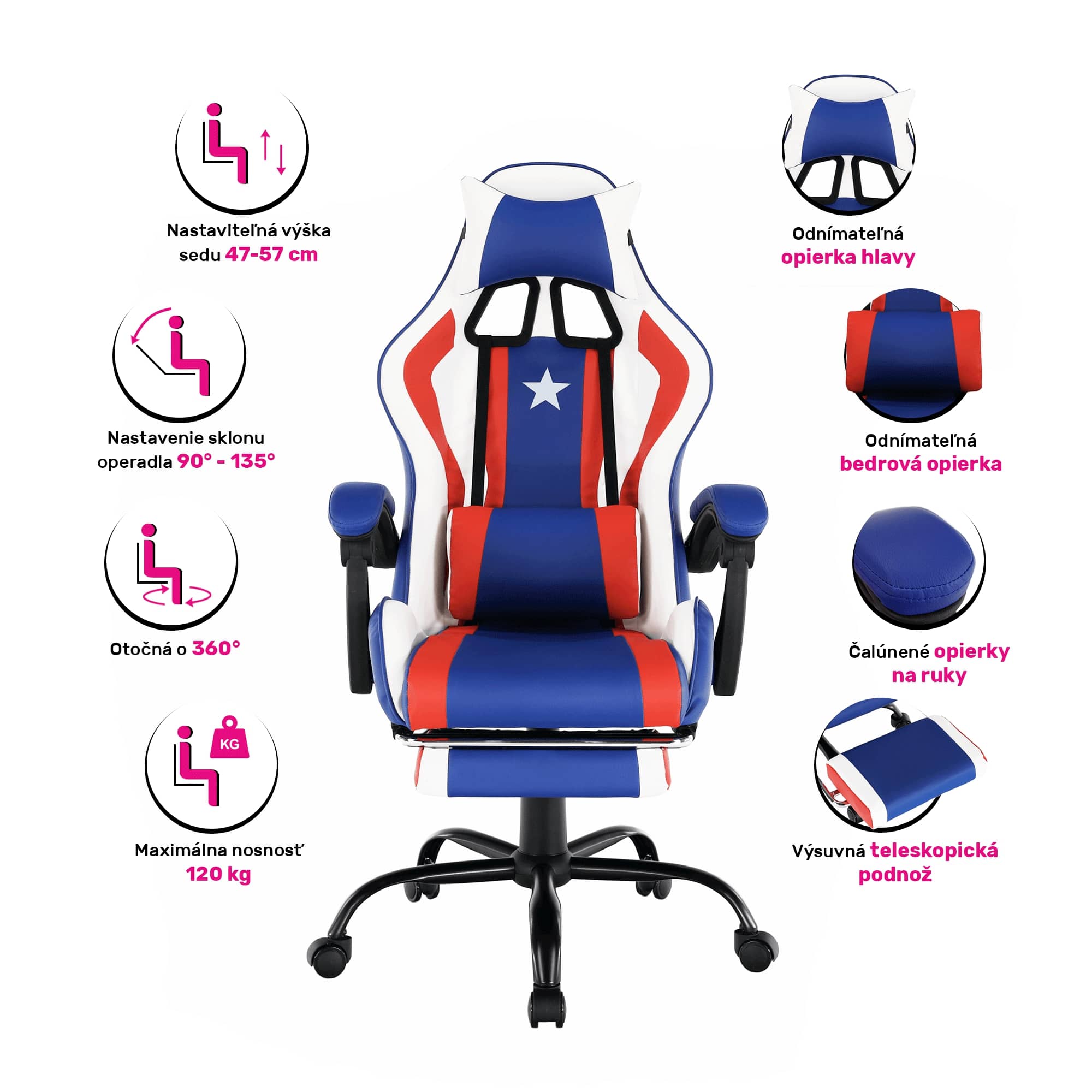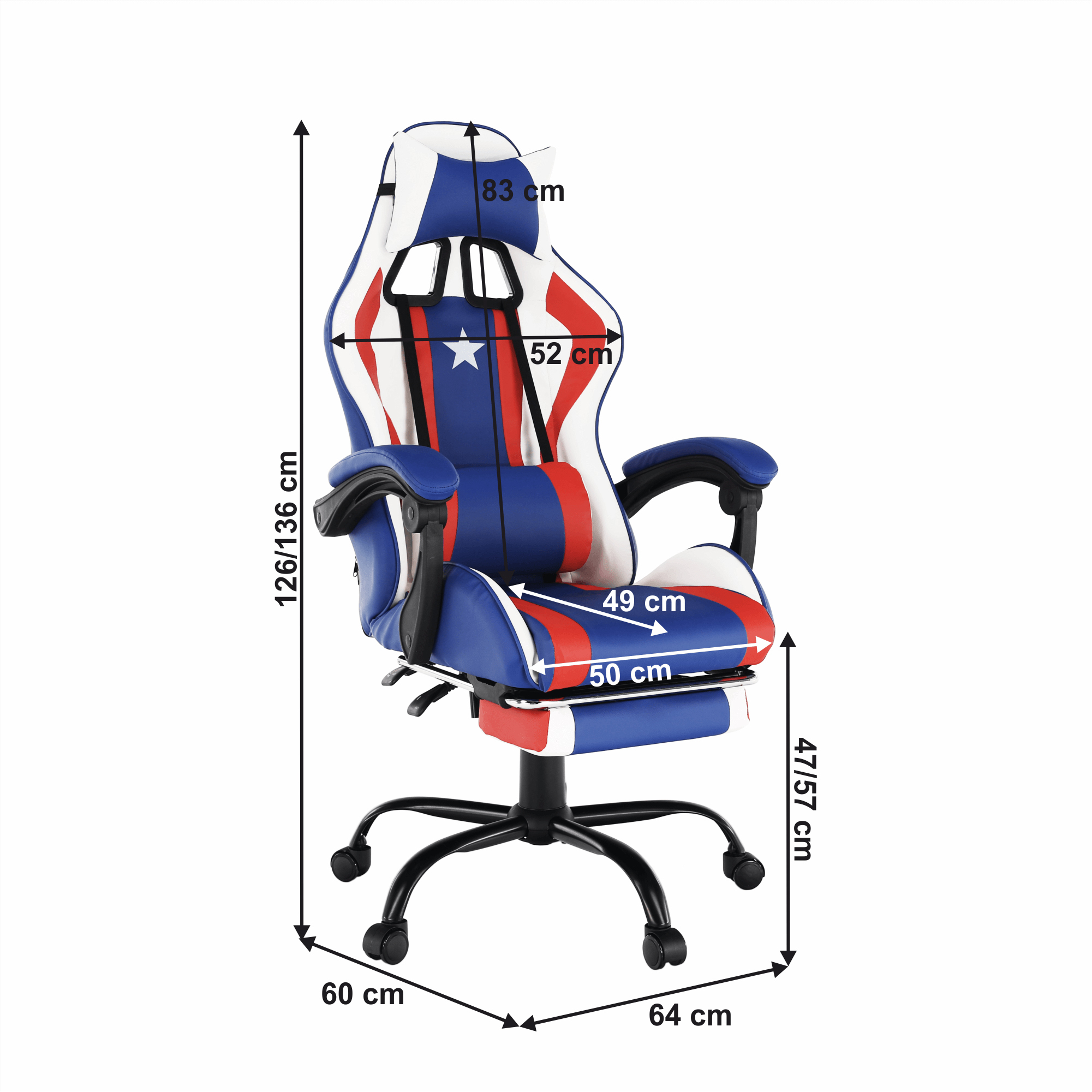 Fotoliu de birou/ gaming Casie (albastru + roșu)