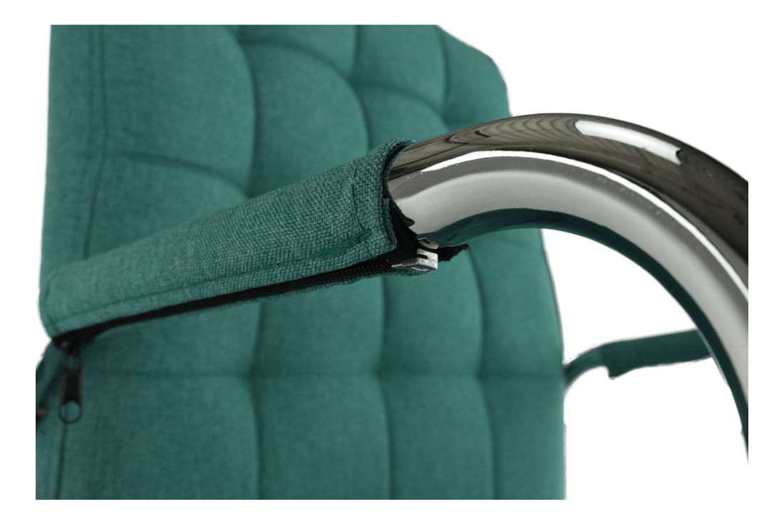 Fotoliul modern de birou MORGEN vă va atrage prin culoarea sa plăcută de verde-azur. Liniile sale perfecte reprezintă vârful perfecțiunii. Este completat perfect de o bază cromată pe care se află roțile din cauciuc de calitate care sunt potrivite atât pentru podele plutitoare cât și pentru cele din lemn. Confortul acestui fotoliu este completat de cotierele mâinii cromate la mijloc.
