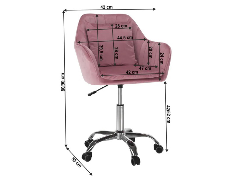- Tapițerie din catifea Velvet de culoare roz, care adaugă un plus de prosperitate și delicatețe spațiului de lucru.