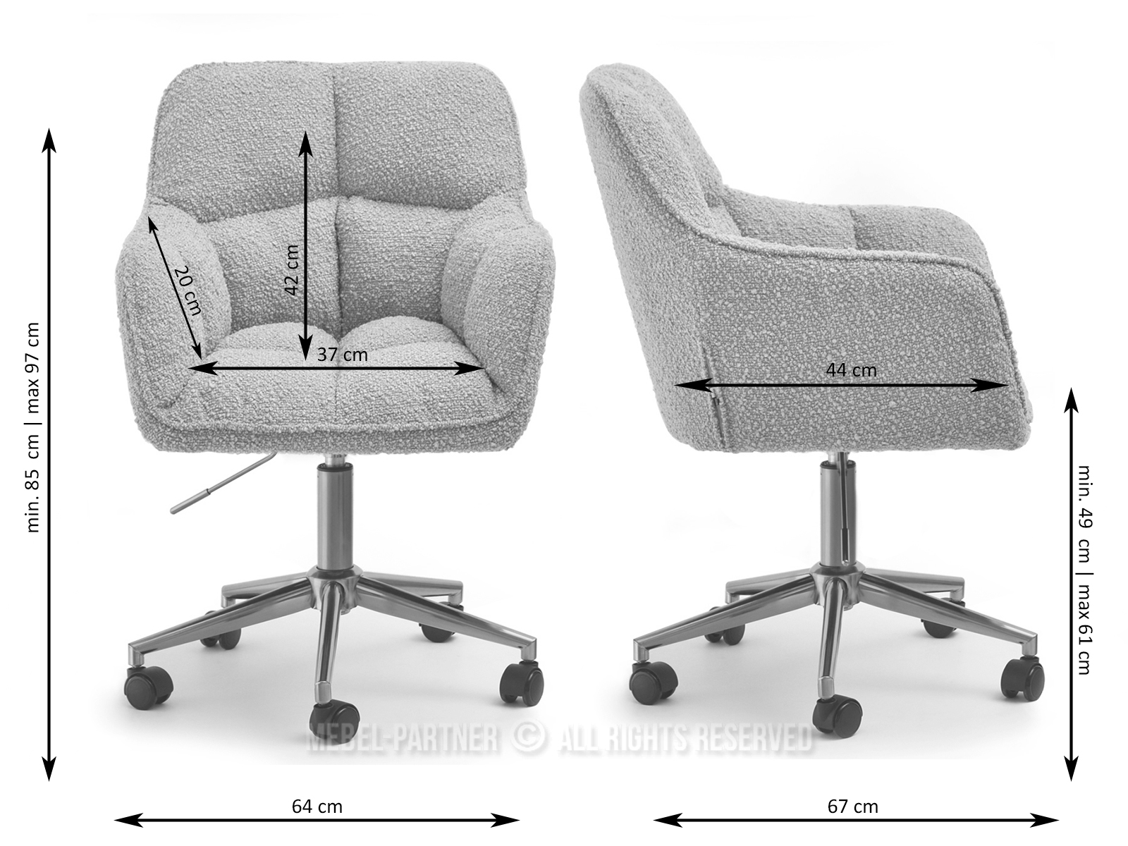 șezut rotativ, baza centrală cu roți, mânere: da, înălțime reglabilă