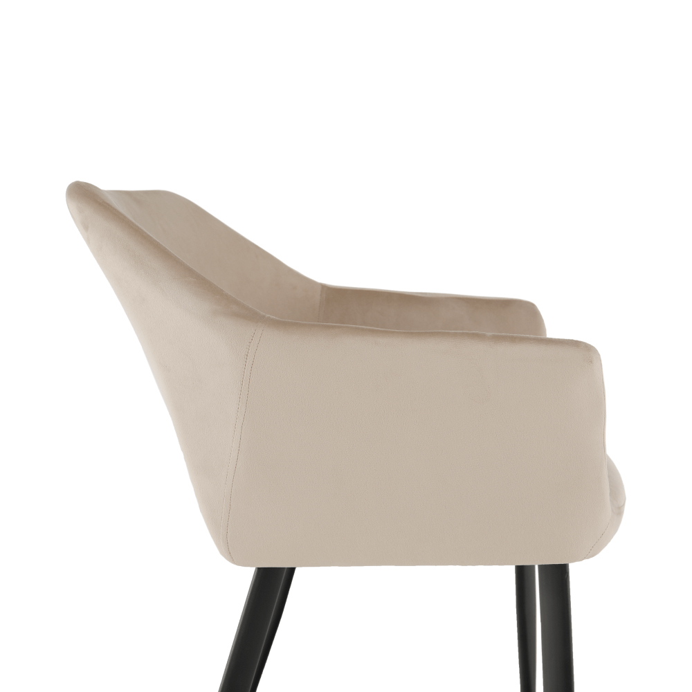 Fotoliul modern și confortabil este și fotoliul de design ODOVEL. Realizat din țesătura Velvet într-o nuanță de bej cu picioare din metal negre. Țesătura din catifea sporește designul elegant și designul luxos al fotoliului. Acest tip de mobilier oferă cu siguranță mai mult decât un scaun clasic din lemn. Așezați-vă și bucurați-vă de binemeritata dvs. cafea.