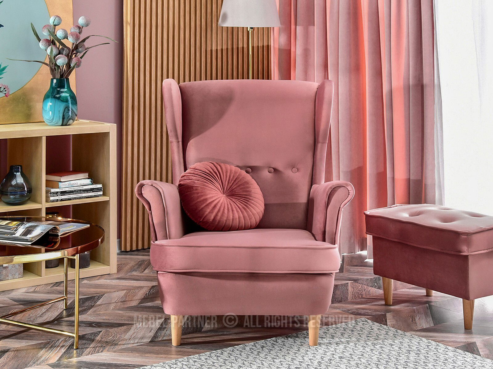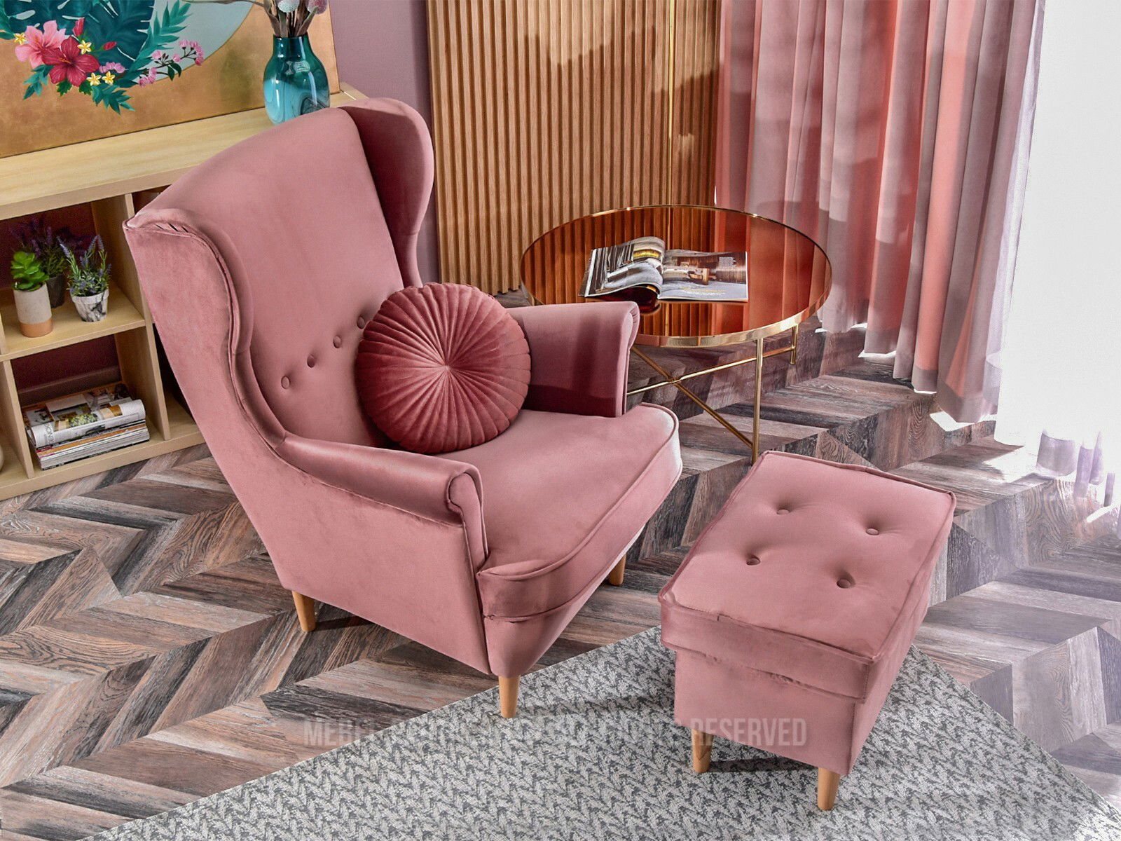 Fotoliu relax Margis (roz pastel + fag)