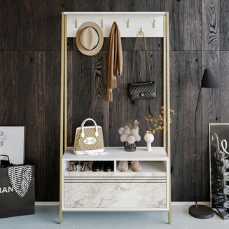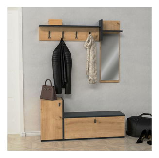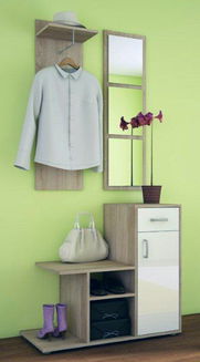 Baza setului de mobilier de hol este un spațiu de depozitare pentru pantofi - pantofar, oglindă, rafturi superioare, un cuier sau un scaun pentru încălțarea pantofilor. Unele seturi pot avea gadgeturi precum iluminat, cuier pentru chei, suport pentru umbrele și chiar o comodă.