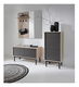Fabricat din pal laminat cu margini ABS. Ușa este fără mânere, și se deschide cu ajutorul sistemului PUSH UP. Combinația de culori dintre stejarul Jackson Hickory, grafit și picioare negre creează ceva nou, cu o notă de prospețime. Oferă spațiu de depozitare sub forma unui dulap cu două uși, cu bară pentru umerașe care oferă trei cârlige și oglinzi