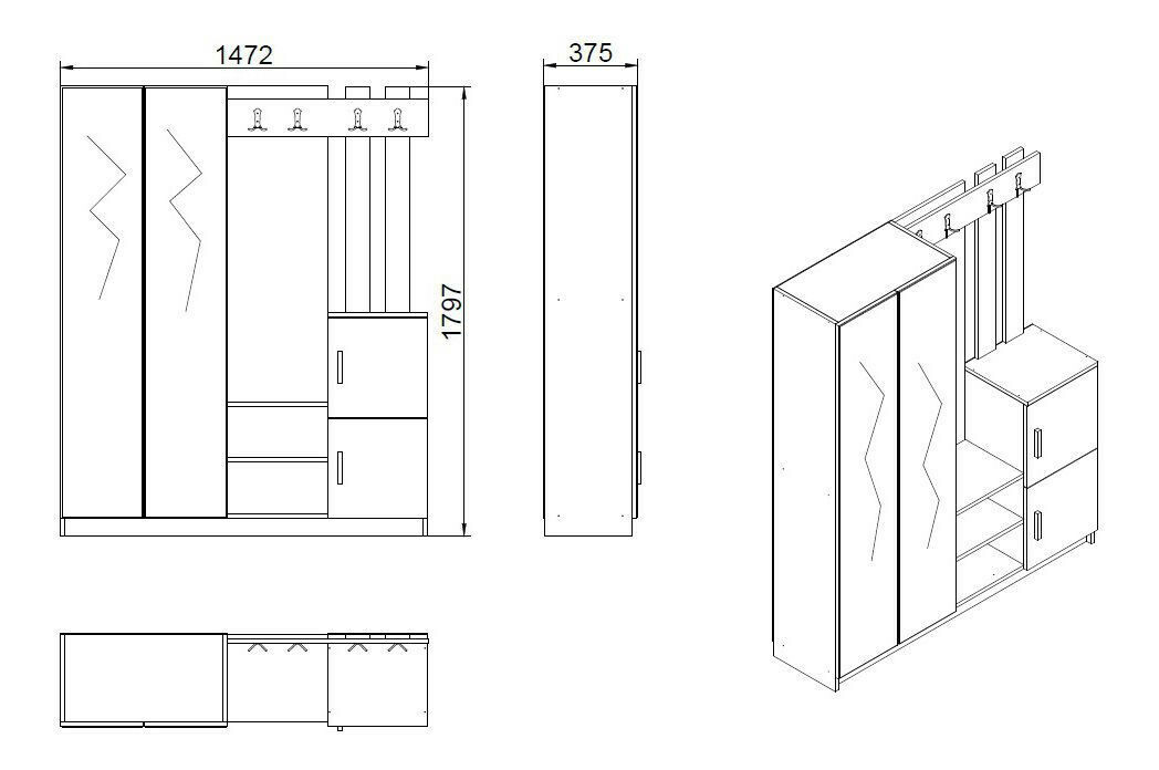lățime: 147,2 cm înălțime: 179,7 cm adâncime: 37,5 cm