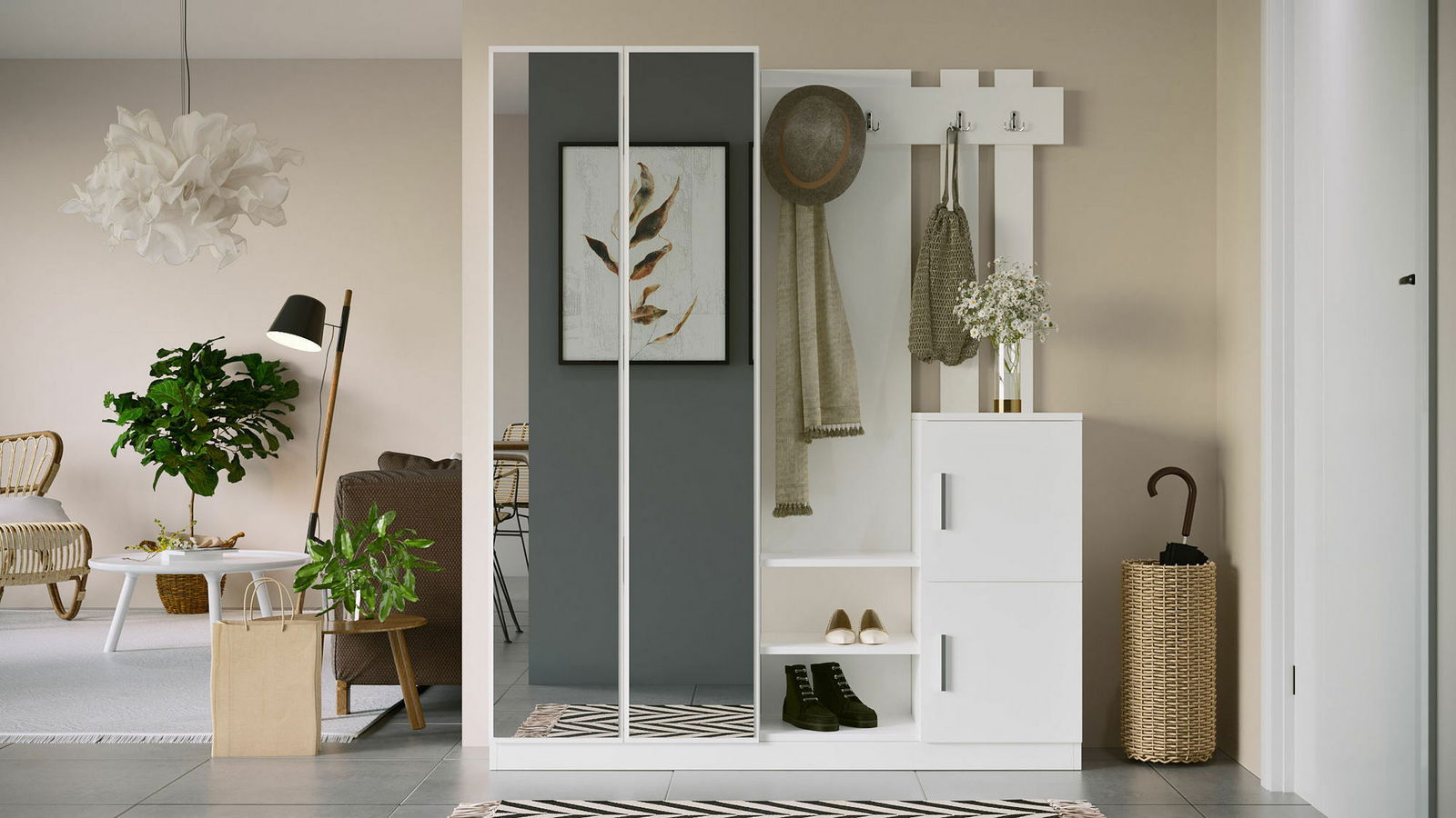 - Holul devine un spațiu organizat și primitor, unde hainele, accesoriile și pantofii își găsesc locul potrivit.