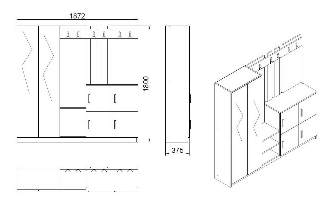 lățime: 187,2 cm înălțime: 180 cm adâncime: 37,5 cm