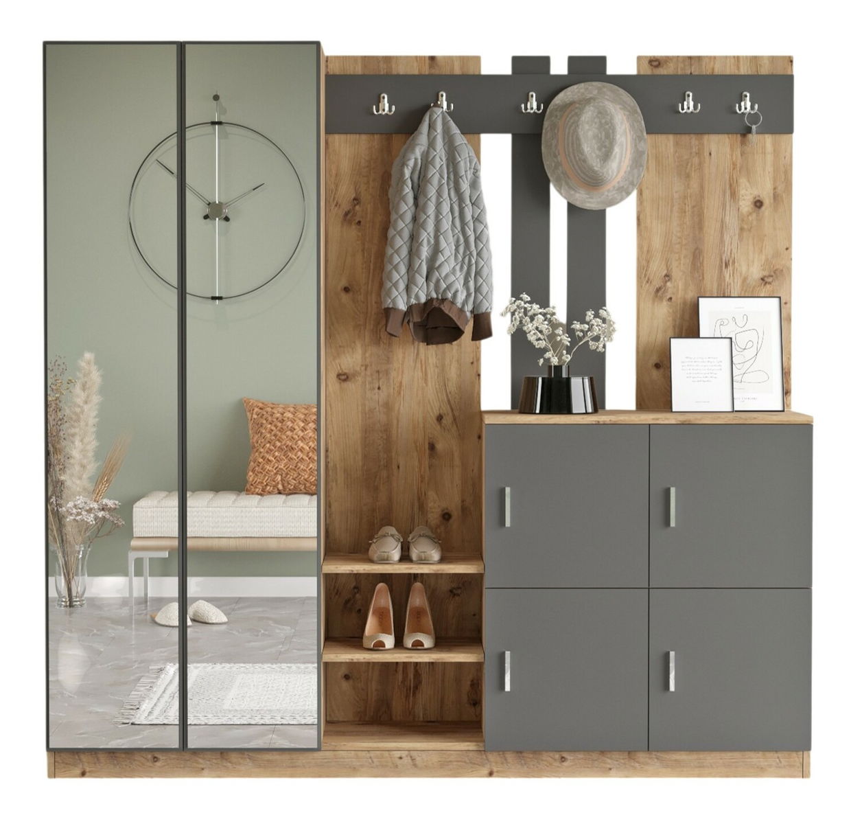 Este foarte util, având suficient spațiu pentru paltoane și pantofi.