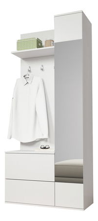 AfișeazăHolul elegant Greg oferă suficient spațiu de depozitare, în ciuda dimensiunilor sale mai mici. Conține un dulap inferior cu sertare, care va servi deasemenea ca și pantofar, un panou suspendat cu trei cârlige pentru agățarea hainelor și un raft pentru pălării. Dulapul lateral cu oglindă va fi, de asemenea, un ajutor practic la îndemână atunci când vă pregătiți pentru muncă sau pentru o petrecere.