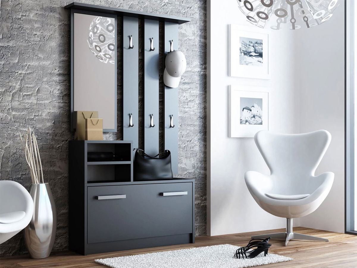 AfișeazăEste o soluție multifuncțională și completă pentru hol. Vestibulul Kolom este format din două elemente. Primul este un panou de perete cu oglindă mare și loc pentru agățarea hainelor de exterior. Al doilea element al setului este