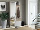 - Sertare și compartimente închise care asigură o organizare ordonată a încălțămintei și accesoriilor.