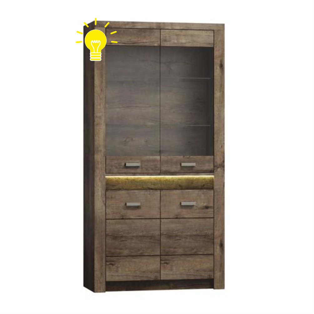 Iluminat LED pentru comoda Inneas 10 și vitrinele Inneas 03 și 05 vor oferi camerei de zi luciul necesar. Iluminatul nu luminează partea de sticlă, ci banda decorativă exterioară.