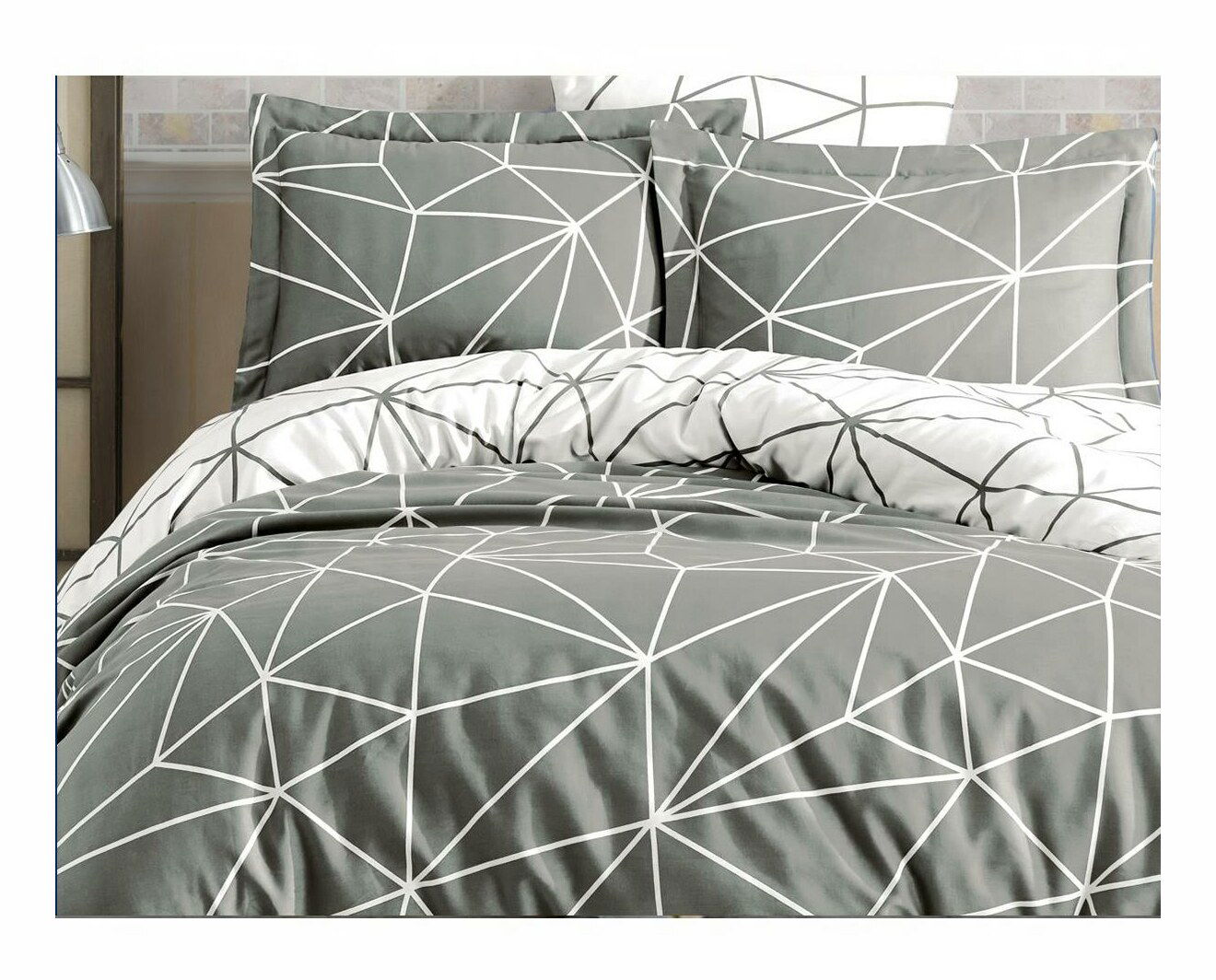 Lenjerie pat 160 x 220 cm Metathron (Gri + Alb)