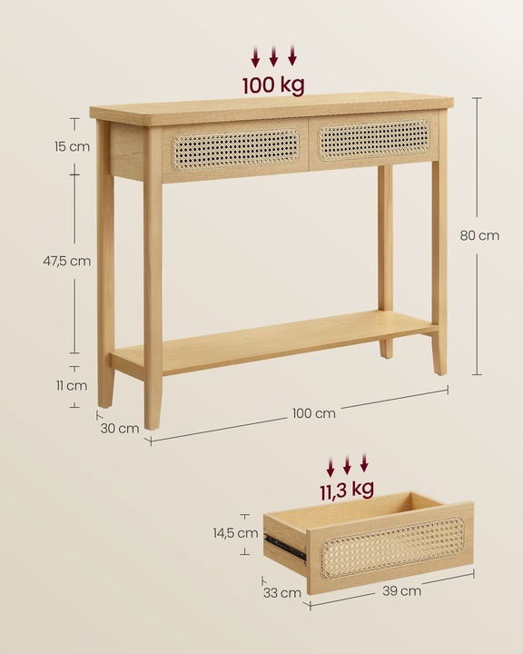 Masă consolă – Songmics – Lurette (stejar deschis) *lichidare stoc