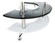 Masă de cafea elegantă, cu design unic și elegant. Polița de masă este curbată în forma literei S. Suprafața de sus a mesei este făcută din sticlă curată. Masa are picioare metalice și versiunea color este de alb în combinație cu negru. La masă sunt adăugate două scaune.