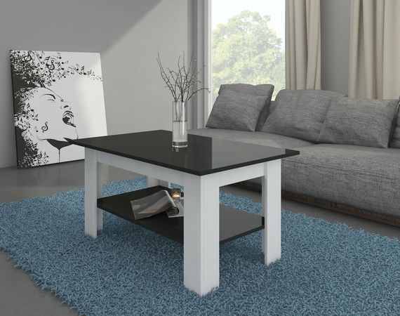 Masă de cafea Emmy (alb + Negru lucios)