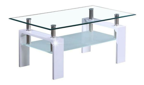 Masă de cafea Lieberman (alb ultra lucios + sticlă)