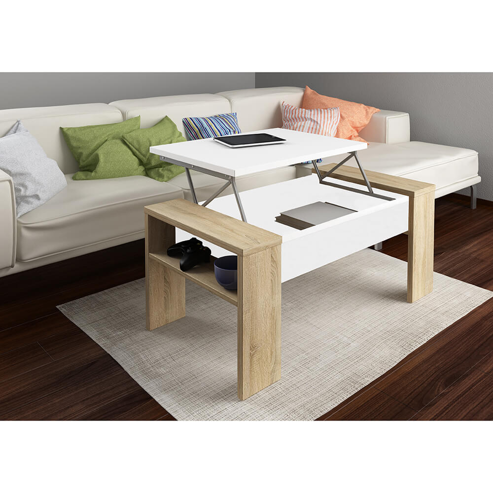 Designul contează.Dăruiți interiorul o doză de stil netradițional și luminați spațiul cu măsuța de cafea Pheva. Este fabricată din PAL laminat. La prima vedere o masă simplă dar totuși irezistibilă. Se mândrește cu o placă superioară reglabilă în înălțime, care poate fi ridicată ușor manual folosind un mecanism simplu. Pe partea laterală a mesei veți găsi o poliță, care cu siguranță nu va rămâne neutilizată.