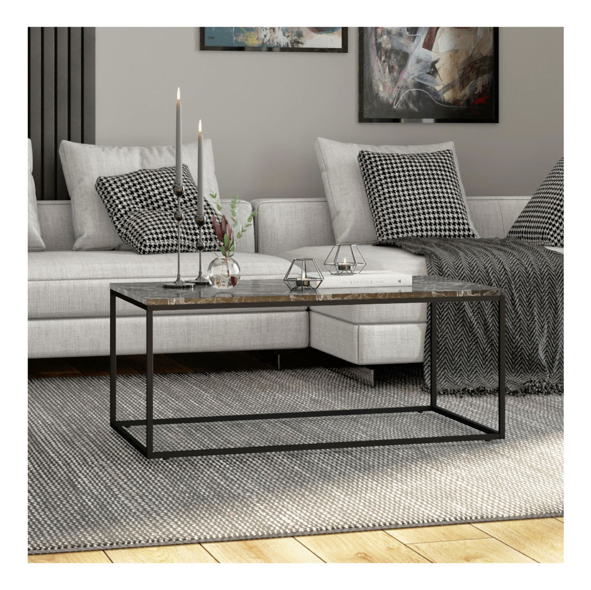Masă de cafea Shepolendo 3 (marmură negru + negru)