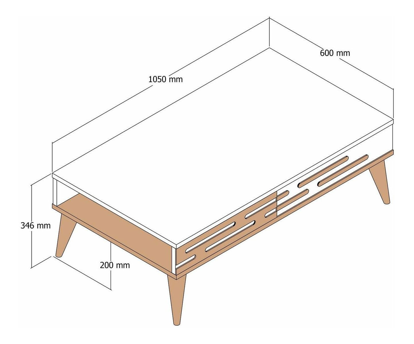grosime: 18 mm, lățime: 105 cm, înălțime: 60 cm, adâncime: 34,6 cm, înălțime picioare: 20 cm