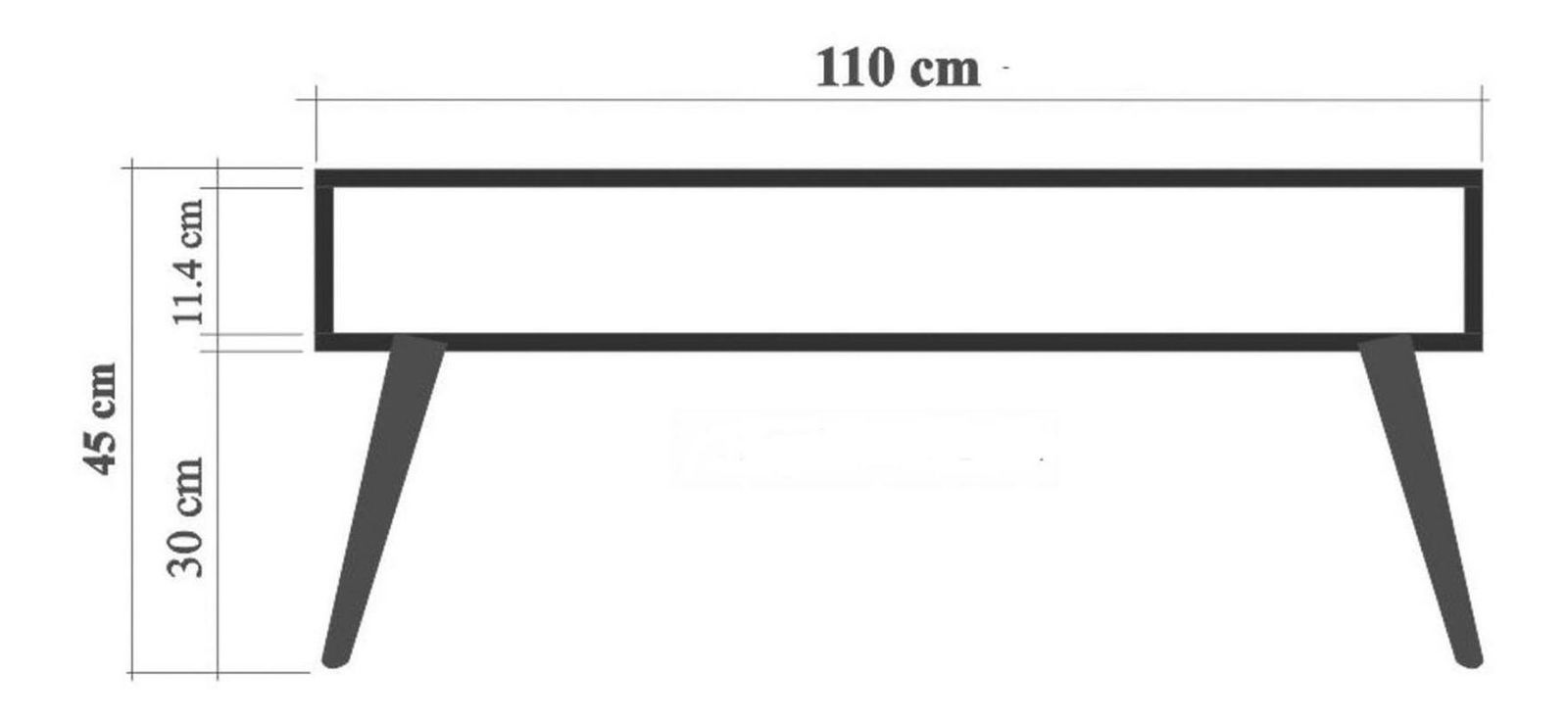 grosime: 18 mm, picioare crap, strat UV, lățime: 110 cm, înălțime: 45 cm, adâncime: 60 cm, înălțime raft: 11,4 cm, înălțime picioare: 30 cm