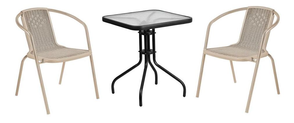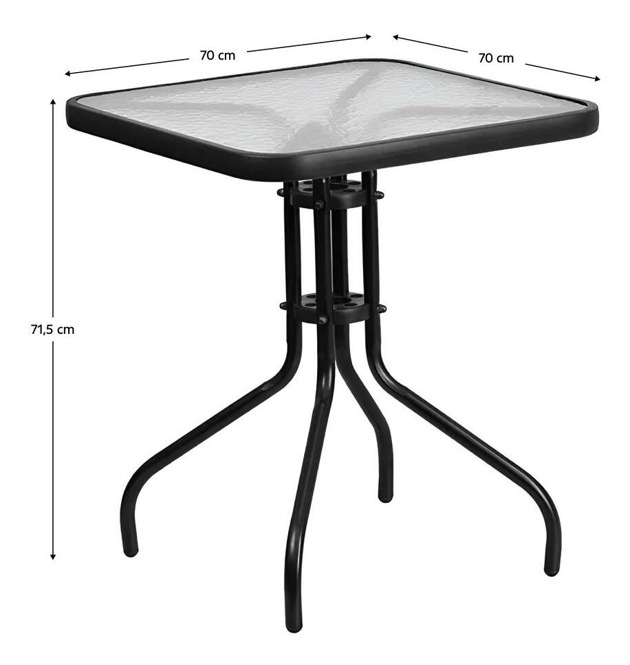 Masă de grădină Fendy (negru oțel + sticlă securizată)