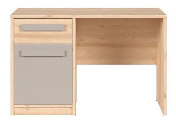 Masă modernă de scris din colecția Namek care conține 1 sertar și 1 dulap cu uși. În interior se află un raft.