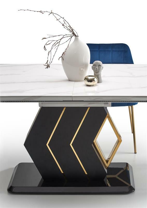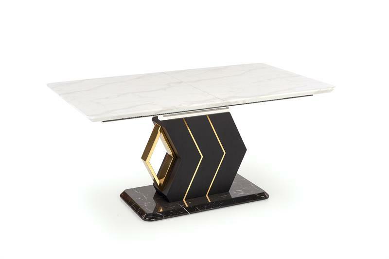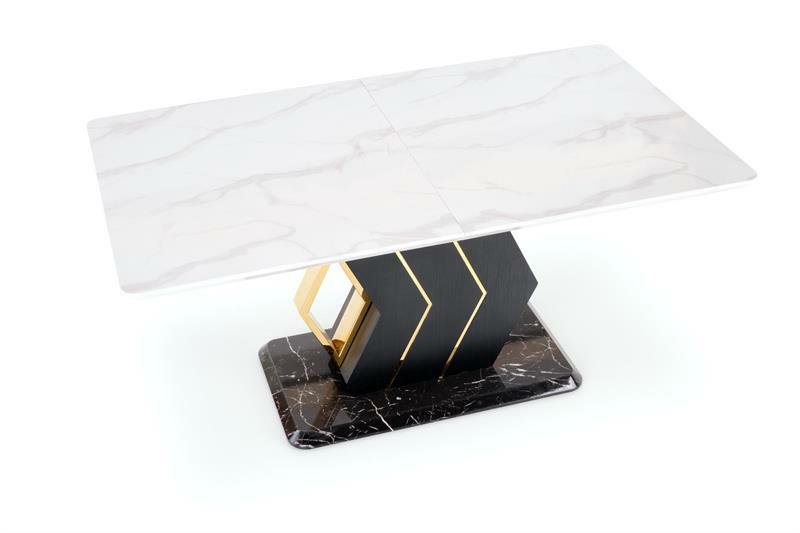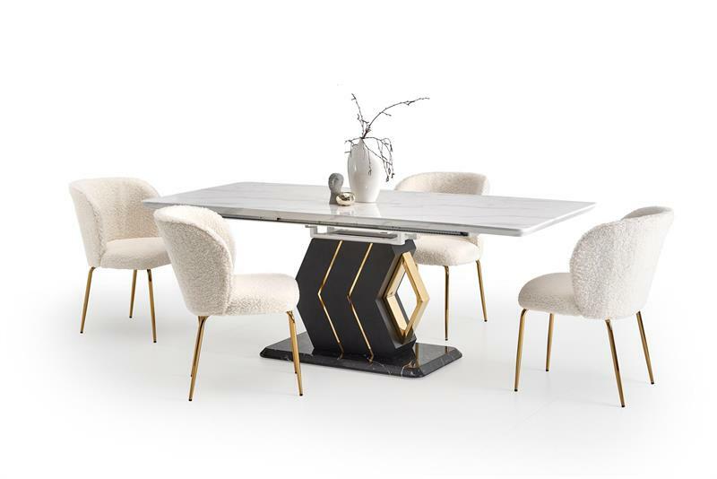 - Masă de sufragerie Vinetu (Marmură albă + negru + auriu)