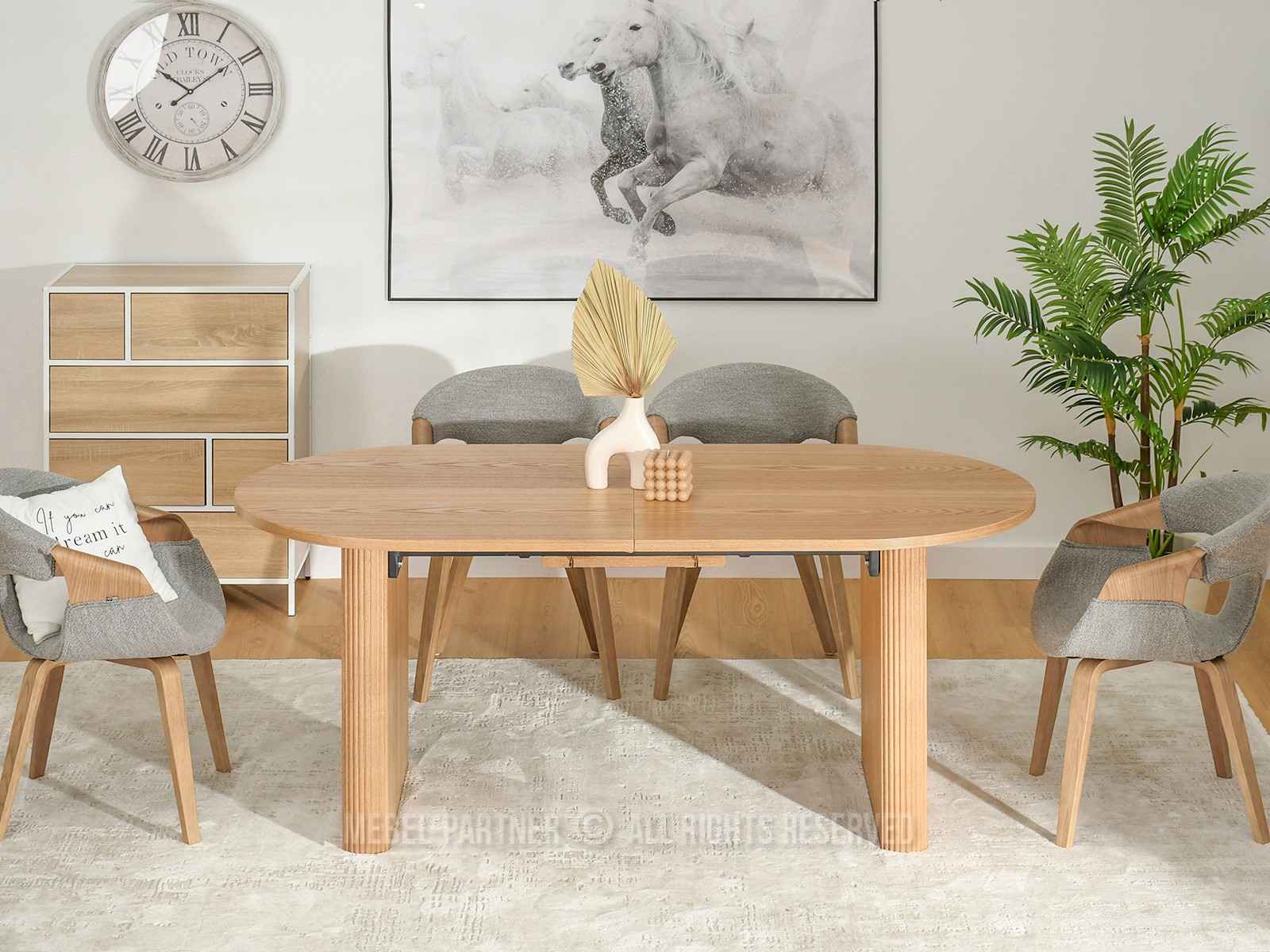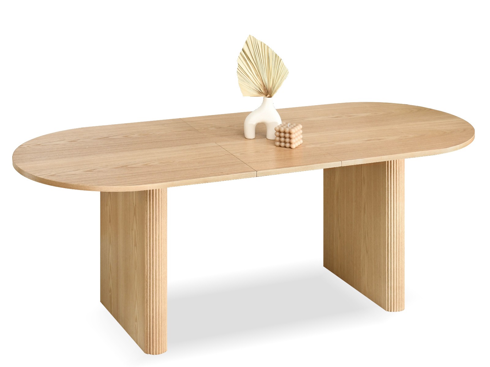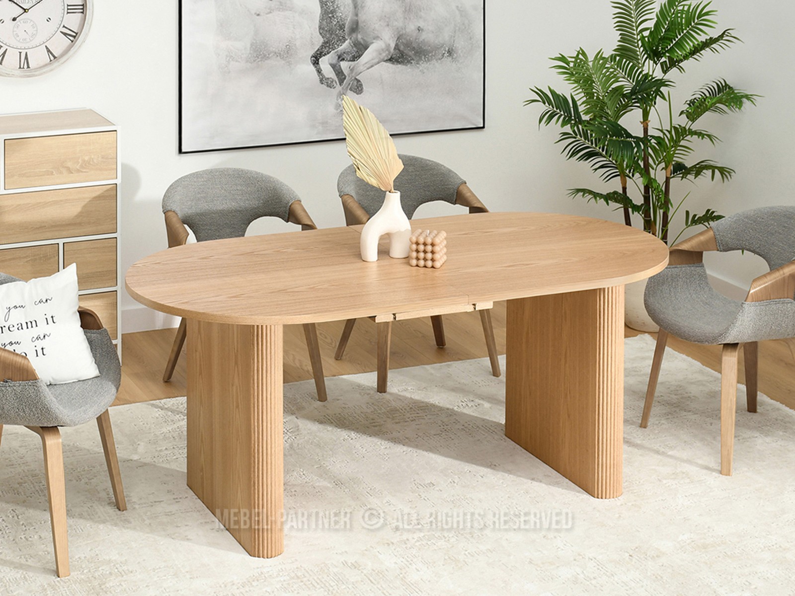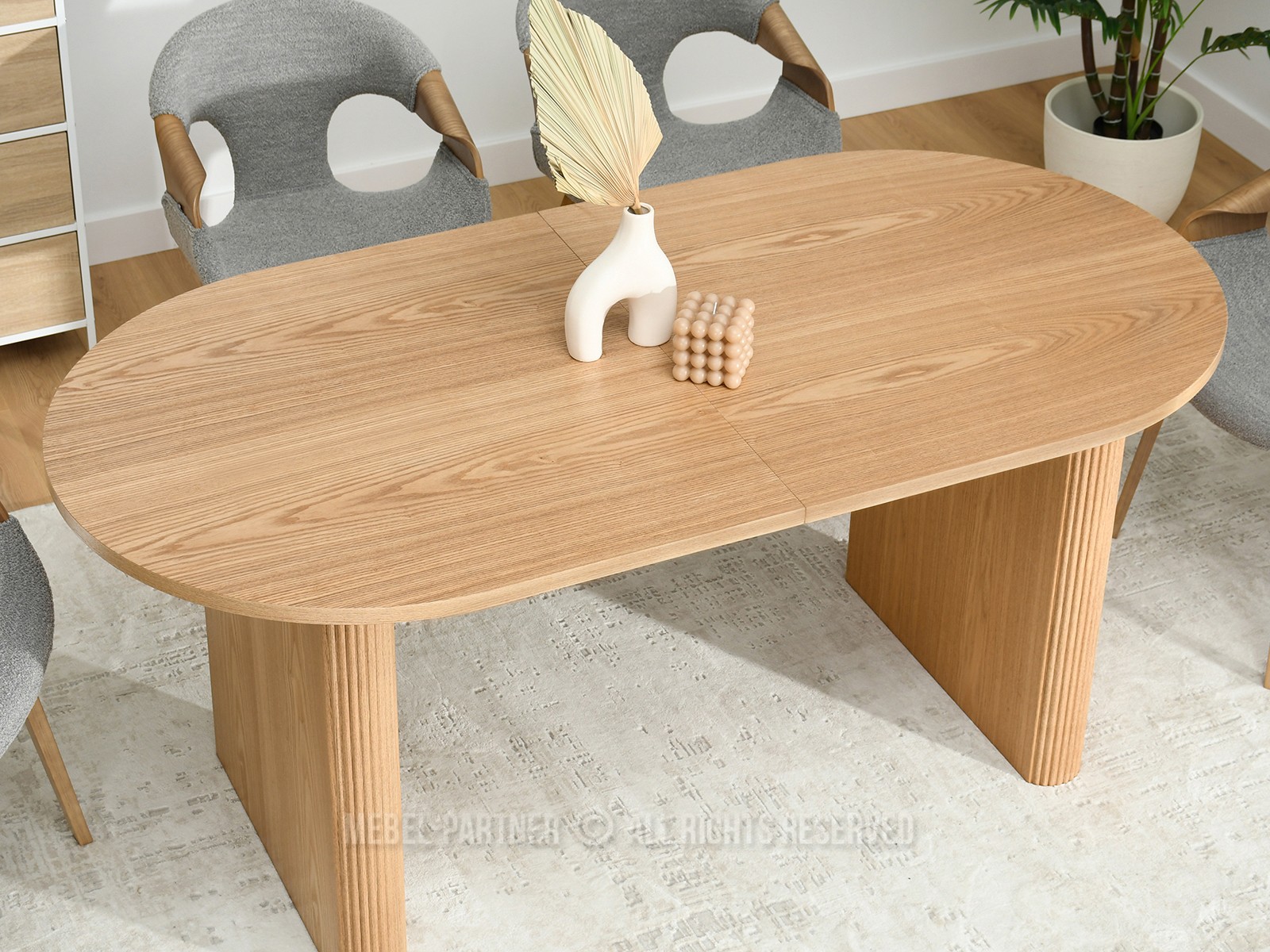 8 locuri, extensibilă, partea superioară ovală, bază cu 2 picioare