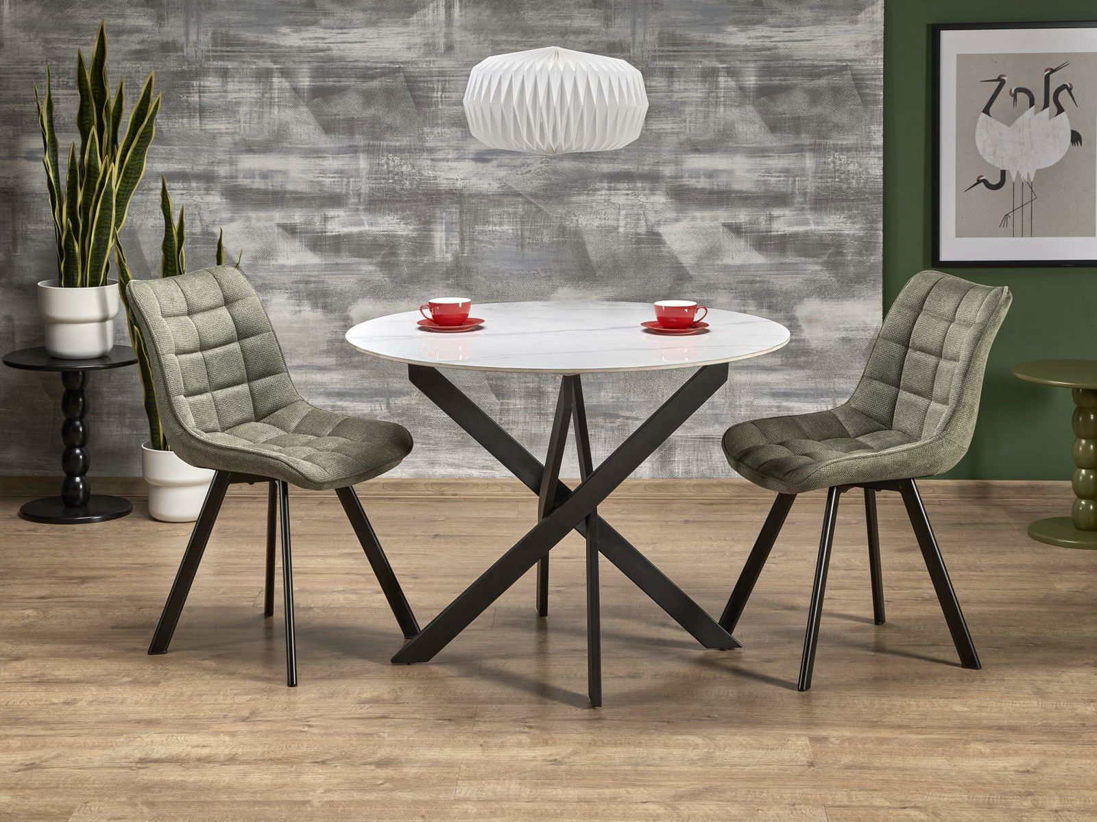 Masă de sufragerie Edgaro 2 (marmură albă + negru) (pentru 4 persoane)