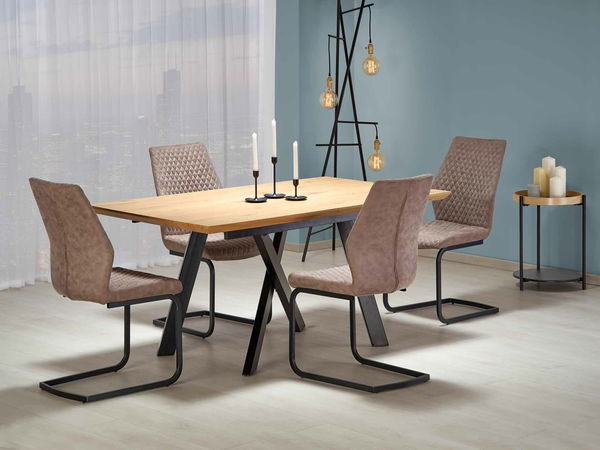 Masă de sufragerie extensibilă 180-240 cm Calista (negru + stejar auriu) (pentru 6 8 persoane)