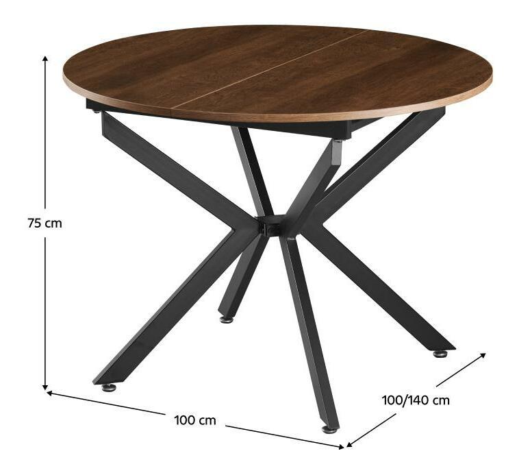 Masă de sufragerie extensibilă Amero (stejar închis + negru) (pentru 4-6 persoane)