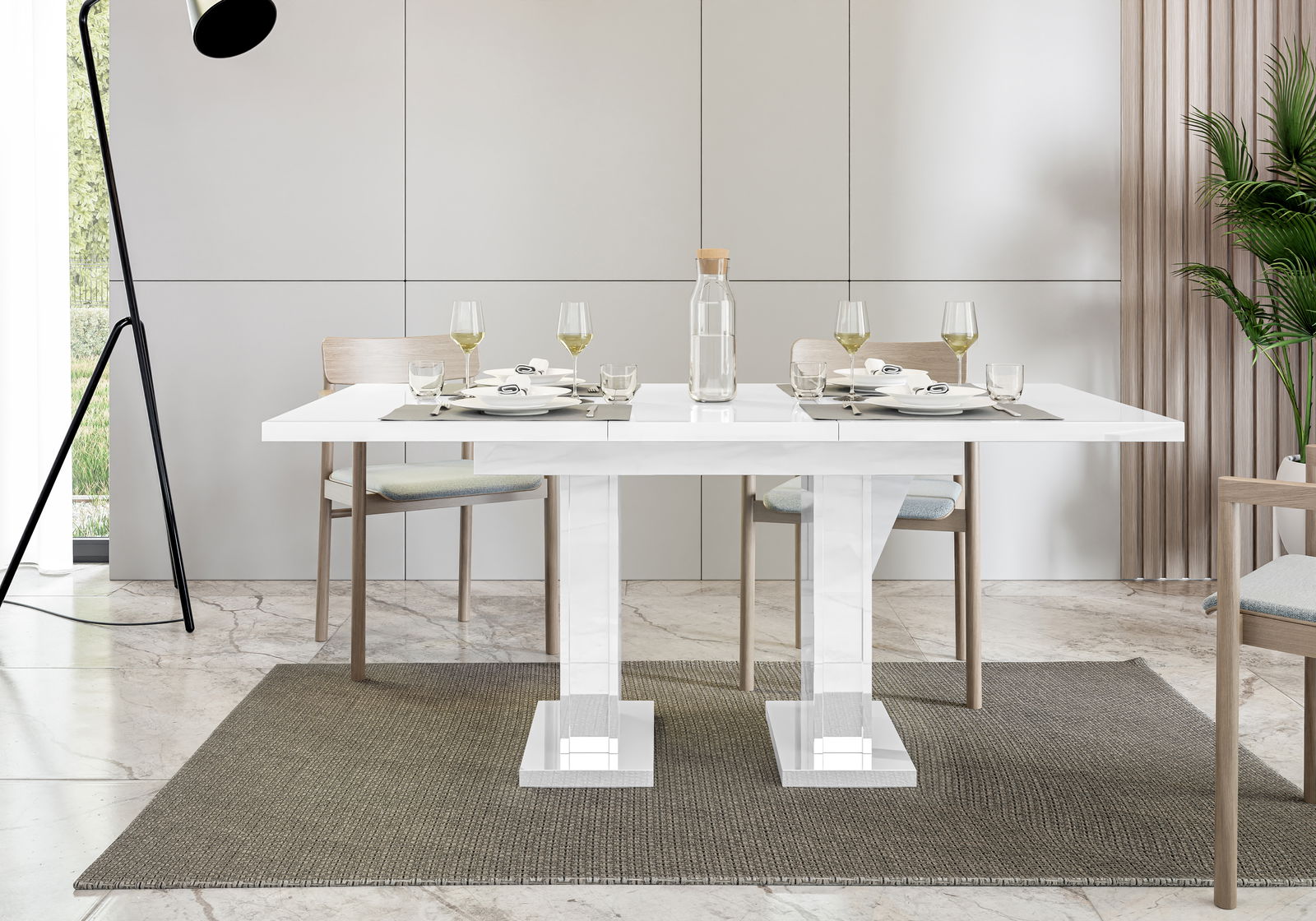 Masă de sufragerie Gilnar (alb lucios) (pentru 4 până la 6 persoane)