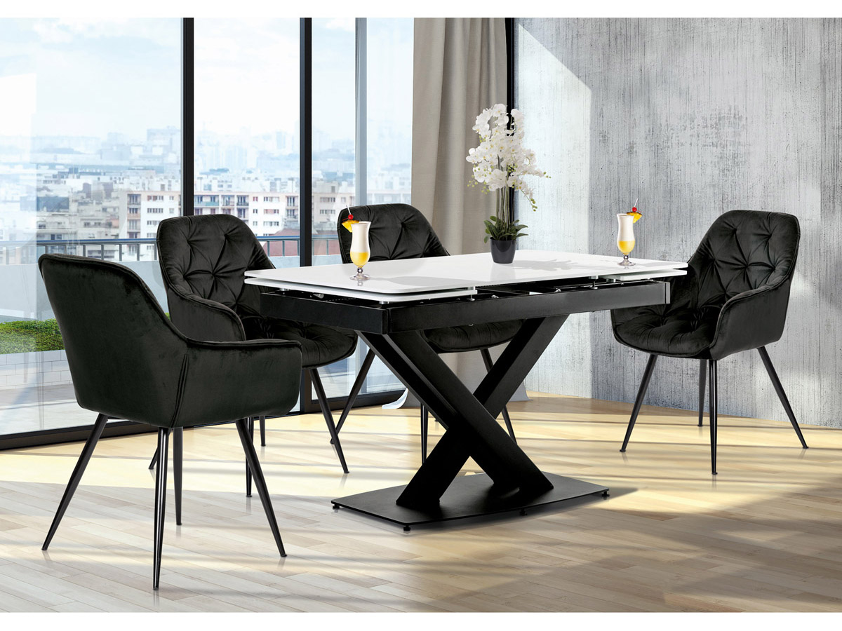 Masă sufragerie Hefin-450m-BK (negru + alb) (pentru 4 până la 6 persoane)