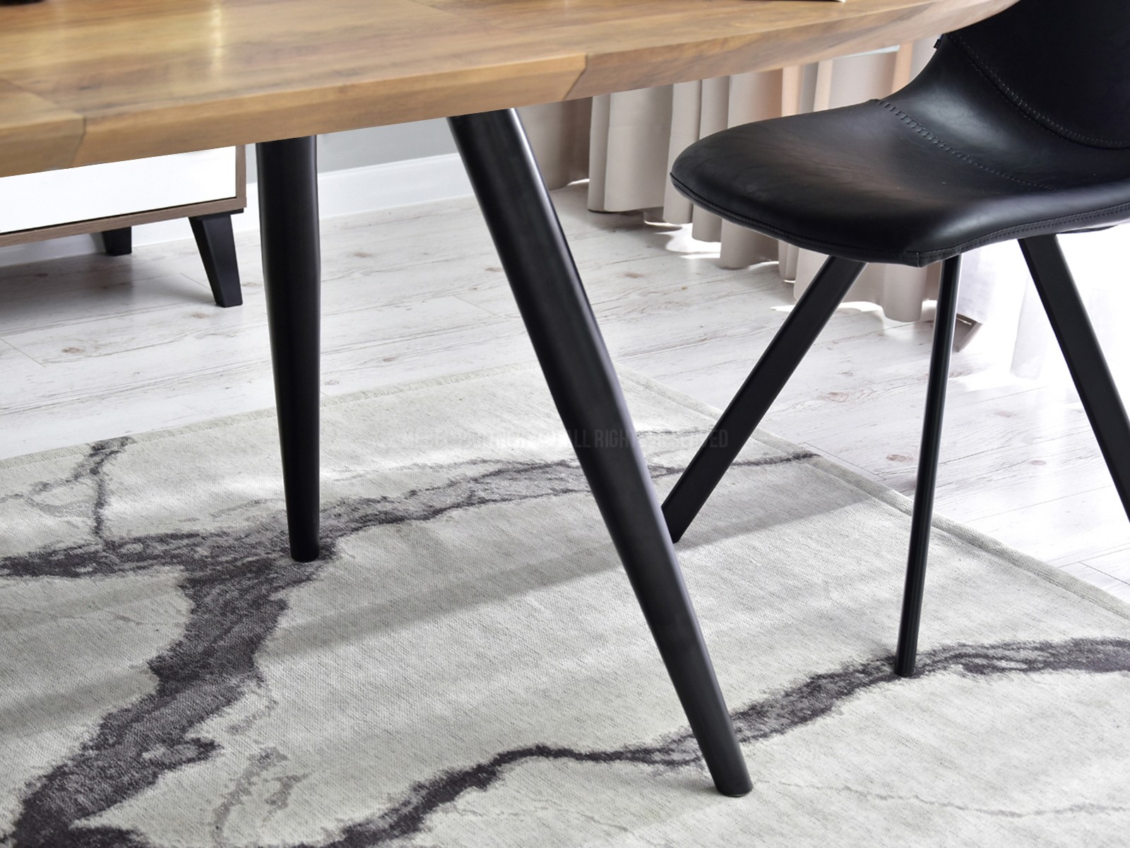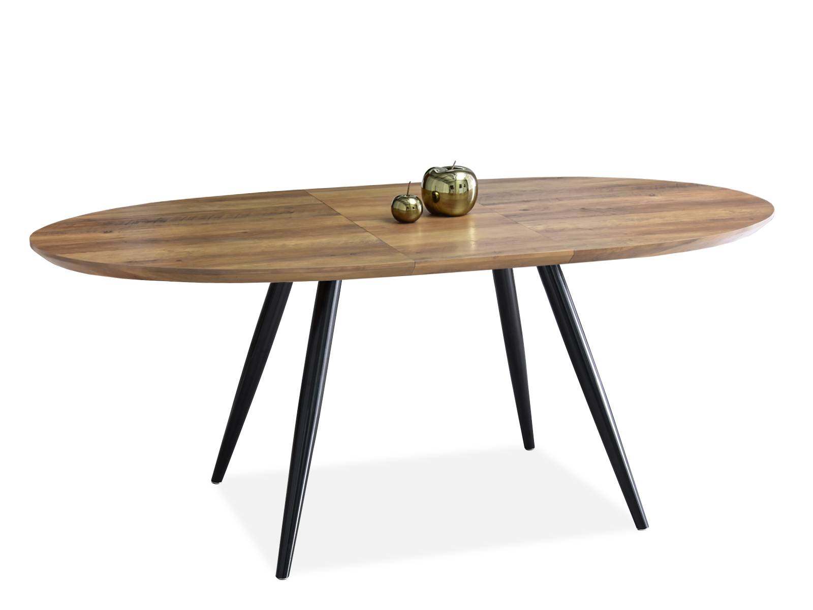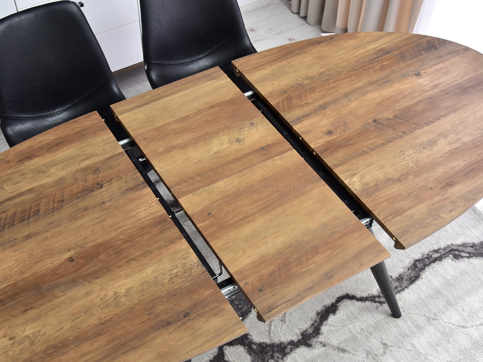 8 locuri, partea superioară ovală, bază cu 4 picioare, extensibilă