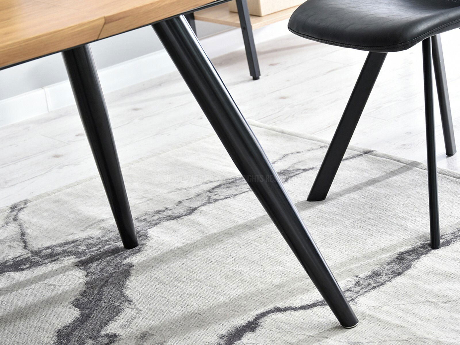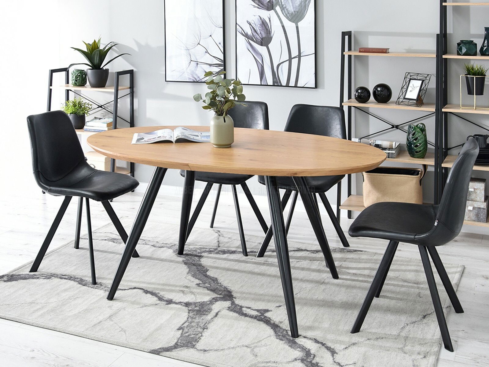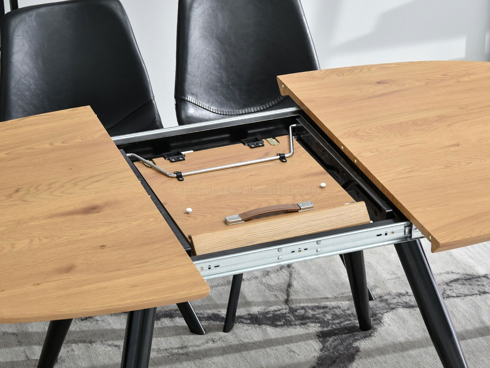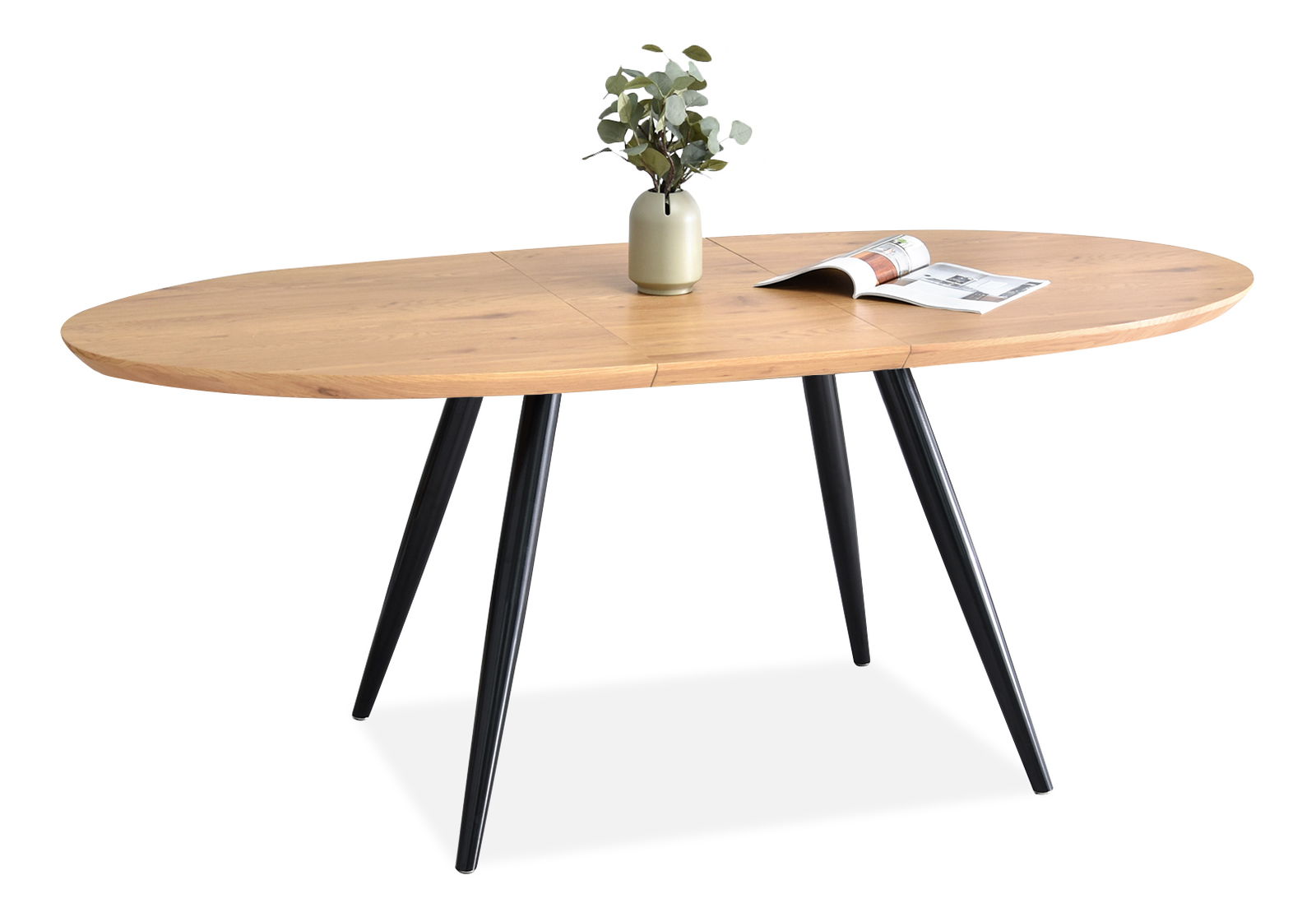 8 locuri, partea superioară ovală, bază cu 4 picioare, extensibilă