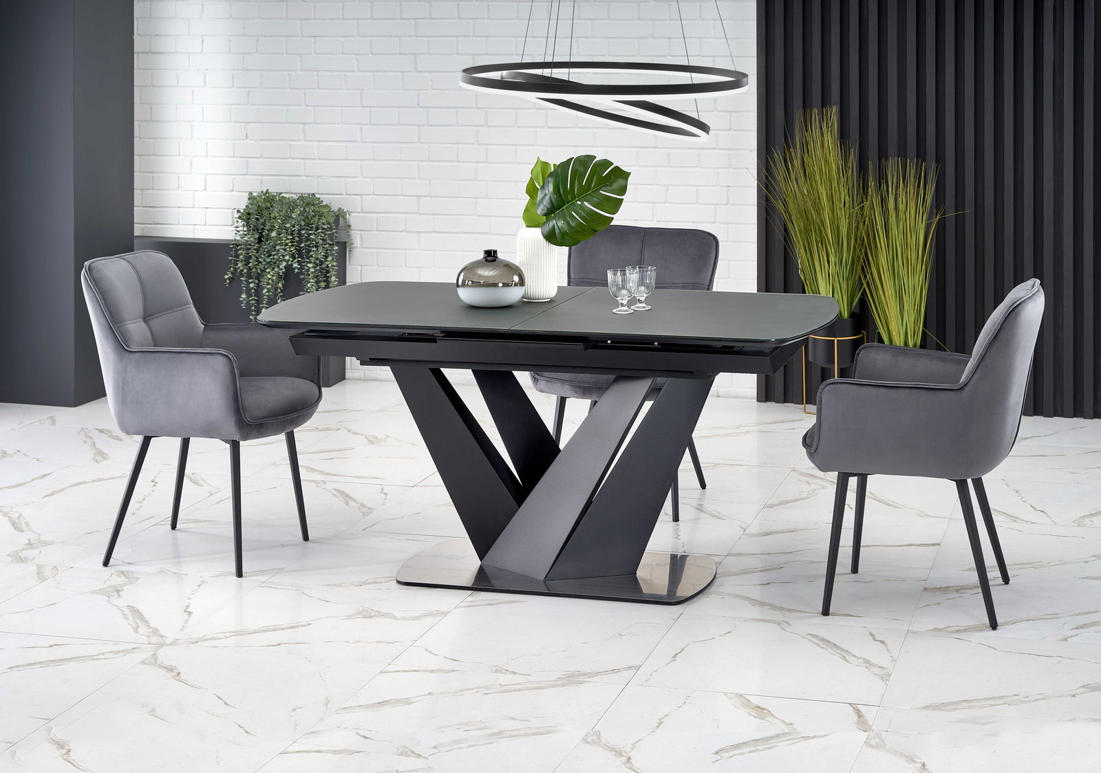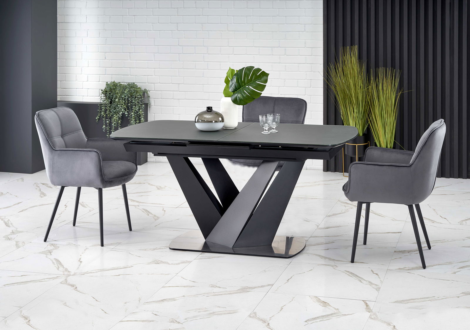 Masă de sufragerie Patrik (gri închis + negru)