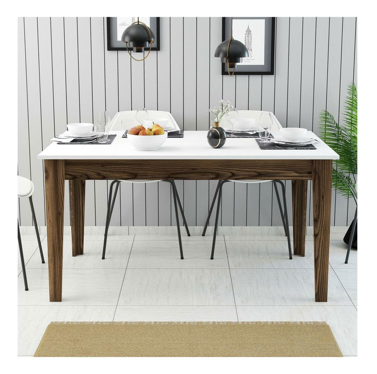 Masă de sufragerie (pentru 6 persoane) Milhouse (nuc + alb)