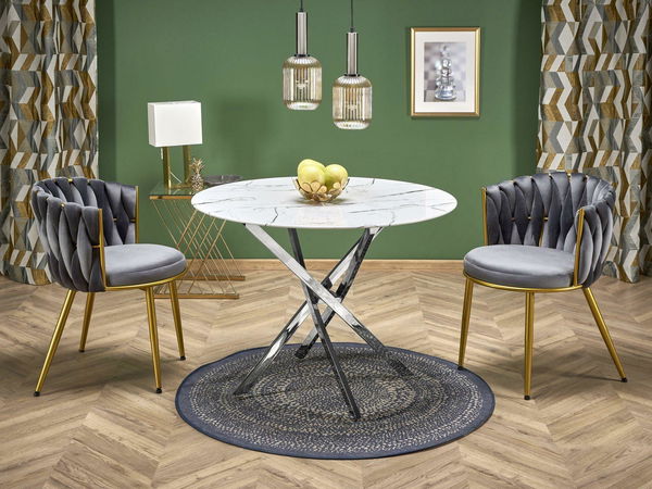 Masă de sufragerie Raunds 3 (alb + argintiu) (pentru 4 persoane)