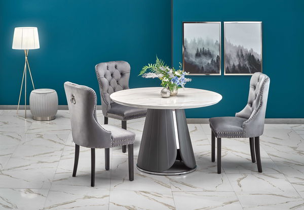 MDF furniruit + Oțel cromat + piele ecologică + marmură albă